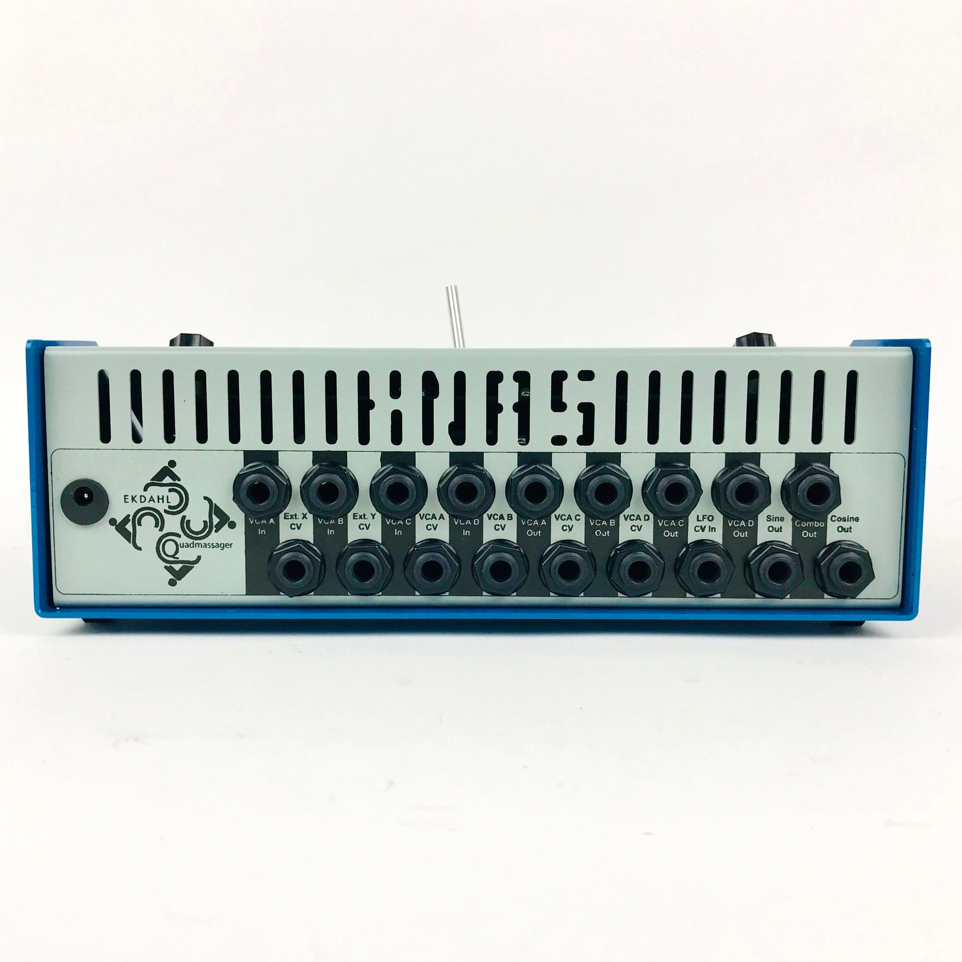 The Ekdahl Quad Massager is a quad VCA, joystick-controlled mixer / quadrophonic panner for Audio or CV. It comes with a voltage-controlled quadrature sine LFO and no less than 18 x 1/4" ins and outs.
